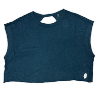 Features: Wide neckline for an easy, throw-on feel; dropped sleeves for a laid-back look; raw hemline for a lived-in edge; wrapped cutout back for added breathability and movement.